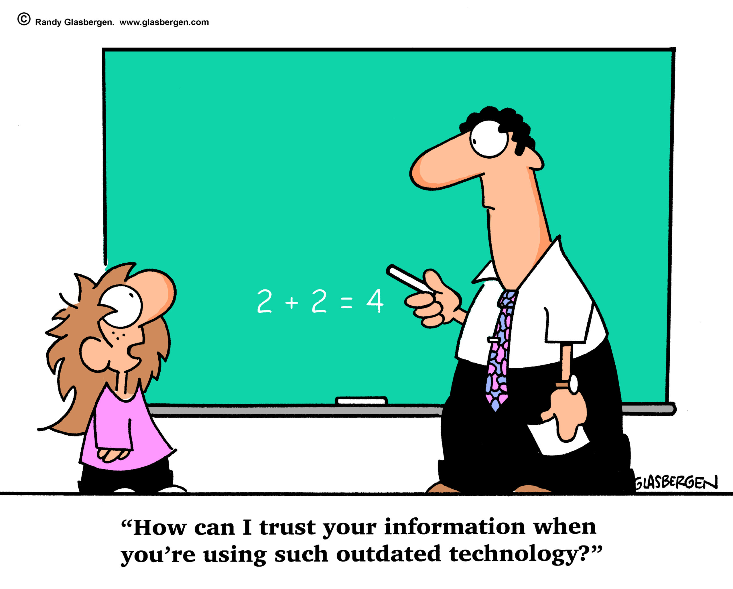 Technology is very important in Education, according to Glasbergen's cartoon. đ